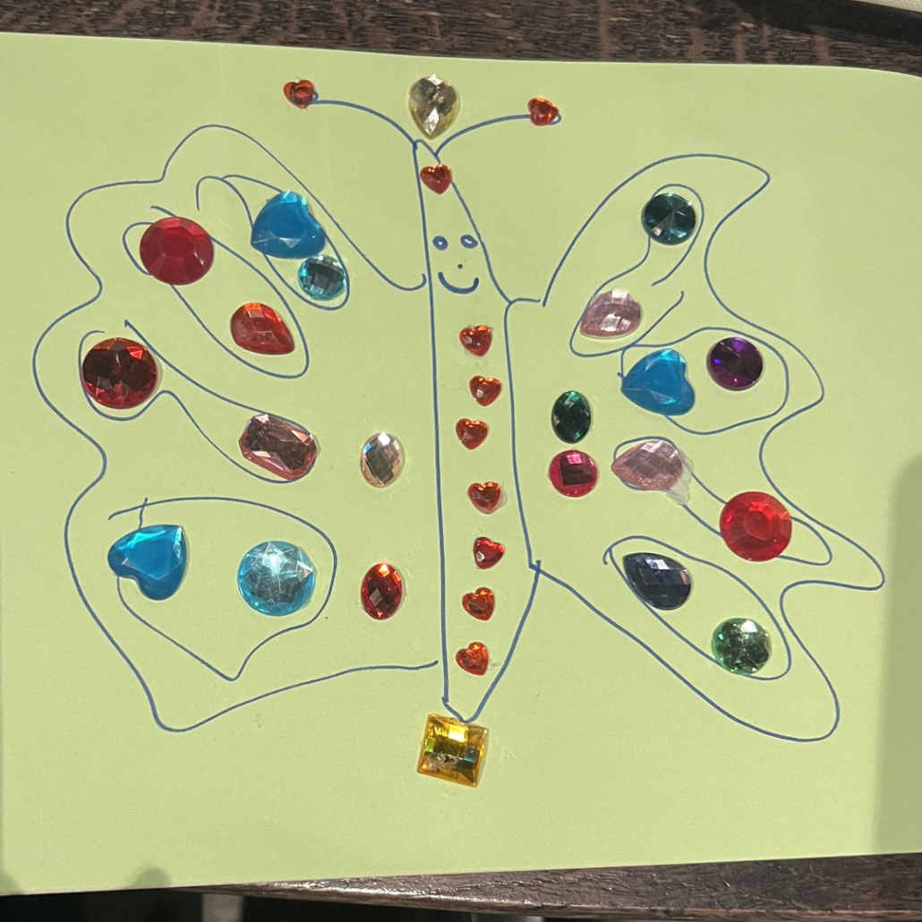 1. The child creates a simple picture, as they would normally, through drawing, painting, a collage, or using whatever media they choose.