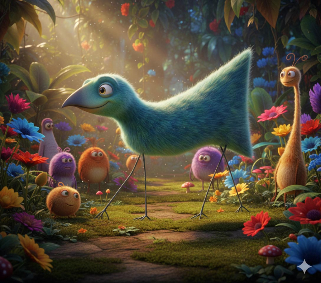 Step 4 is the part where the AI tool is told what to do with the child’s uploaded image. A parent or responsible adult should help proactively with this part. After discussing what the options are and agreeing a desired outcome with the child, the parent should type instructions into the AI tool’s chat prompt. You can ask for the child’s art to be transformed into any number of styles, including cartoon style, Pixar animation style, Wallace & Gromit clay animation style, Toy Story toy style, Steampunk style, etc. You can ask for a particular style of lighting, textures like fur or feathers, and materials like metal or plastic, specify what you’d like to see in the background, and so on. A couple of examples may help…